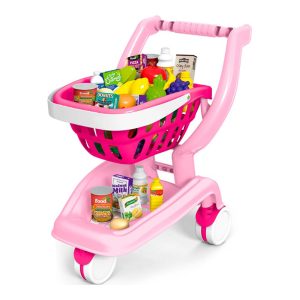 Kids Shopping Cart – 36Pcs Pretend Play Grocery Set (Pink)