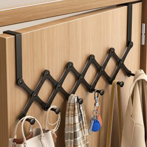 Over The Door Stainless Steel Telescopic Folding 5-Hooks Organizer Rack