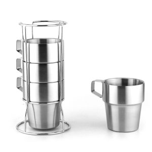 4-Pcs Stackable stainless steel coffee cups double-walled With Stand