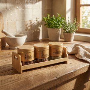 Bamboo Spice Rack Set with 3 Glass Jars Plastic Lid – 400 #CB-TWJ37