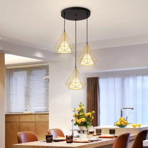 Three Heads Diamond Shape Hollow Iron Pendant Lamp Ceiling Light – Gold GS0401YG3