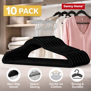 Danny Home 10 Pack Velvet Hangers (Black) VH022B-10