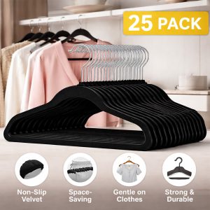 Danny Home 25 Pack Velvet Hangers (Black) VH022B-25