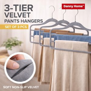 Danny Home 3-Tier Velvet Hangers (3PCS) (Grey) VH025G-3