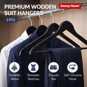 Danny Home Wooden Suit Hangers (3PCS) – Black | WH010B-3
