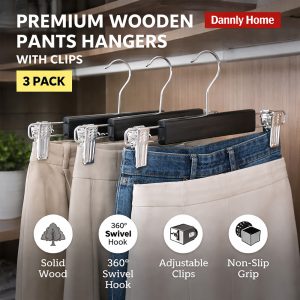 Danny Home Wooden Clip Hangers (3 Pack) – Black | WH013B-3