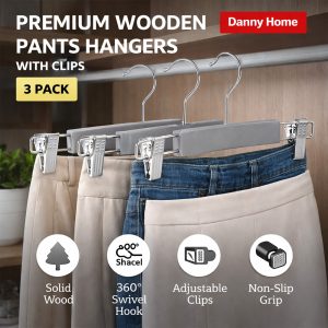 Danny Home Wooden Suit Hangers (3PCS) – Grey | WH010G-3