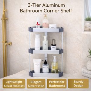 3-Tier Aluminum Bathroom Corner Shelf – Grey Corners