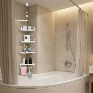 260cm 4-Tier Adjustable Telescopic Bathroom Organizer With Towel Holder For Shower Corner TW-206 (W33 x D22 x H100-260)cm