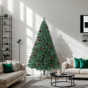 Cool Gift, Premium Scotch Pine Artificial Christmas Tree Thick Branches With Pines Cone